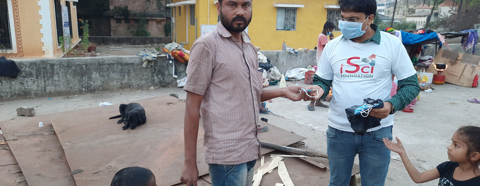 Today on 26.11.2020 The ISCI Foundation distributed face masks to people living in slums near Nani Daman bus stand to protect them from the corona.